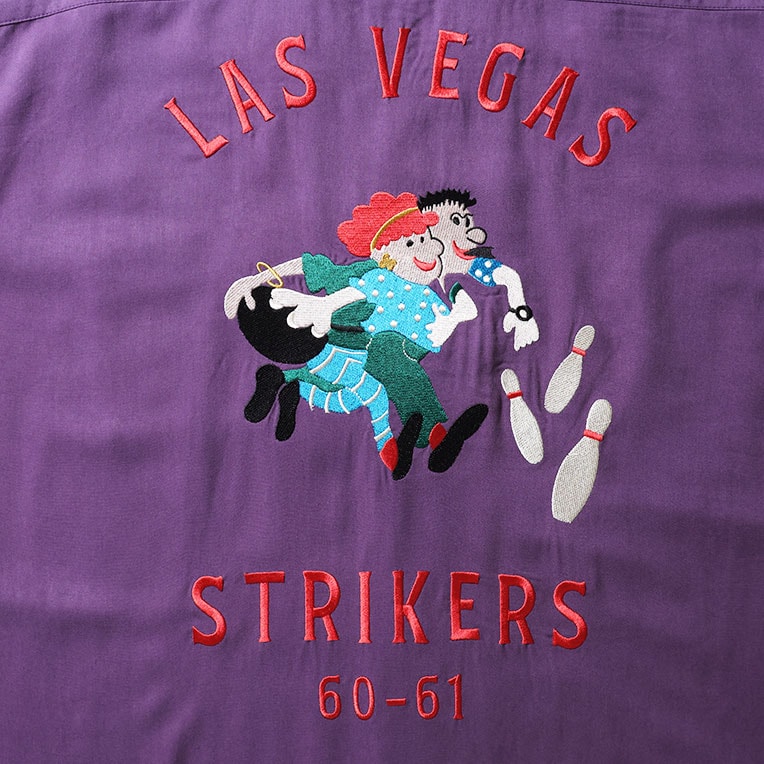 | 商品説明 | HOUSTON春夏定番のボウリングシャツの長袖タイプが登場。生地には適度な厚みのレーヨン100%を使用し、暑い季節にぴったりなさらっとした着心地。こだわりのボウリングピンボタンもオリジナルで作成。刺繍にはパートナーとボーリングを楽しむ、なんともかわいらしいキャッチーな見た目の「STRIKERS」柄。 |