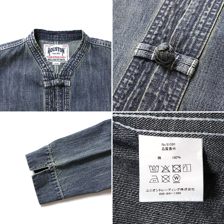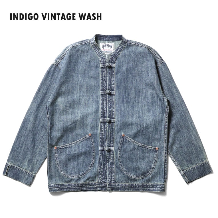 HOUSTON / ヒューストン 51591 SLUB DENIM CHINA JACKET / スラブデニムチャイナジャケット -全3色- メンズ MILITARY アメカジ ビンテージ カンフージャケット シャツジャケット 大きいサイズ 8オンス[51591]