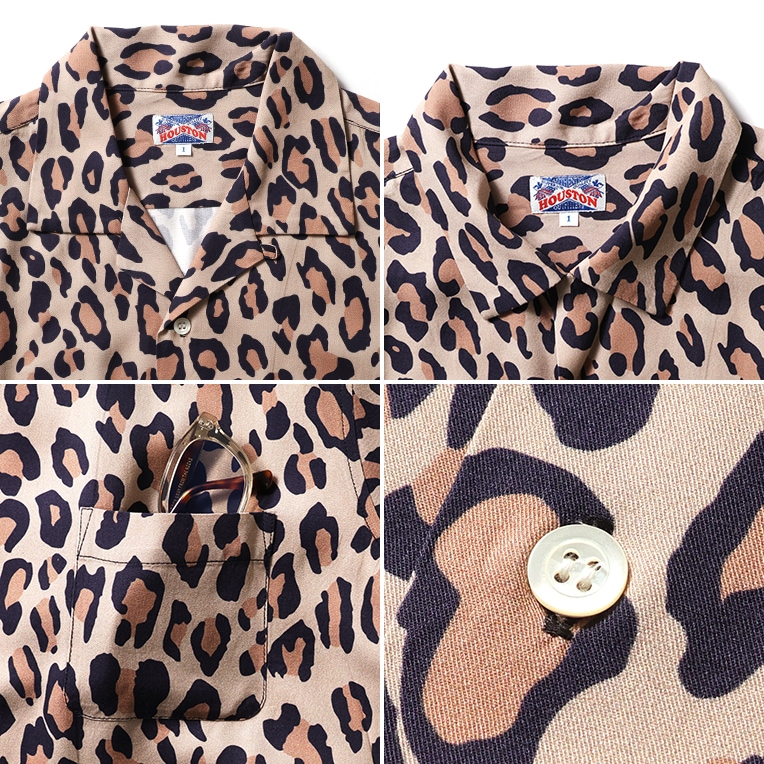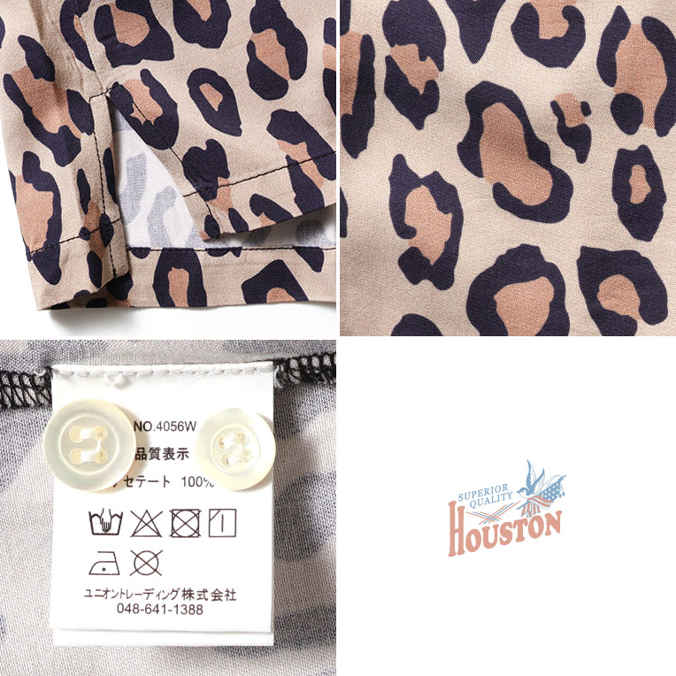 HOUSTON woman / ヒューストン ウーマン 4056W ALOHA SHIRT (LEOPARD) / アロハシャツ -全6色- 総柄 半袖シャツ ヒョウ柄 アニマル柄 ハワイアンシャツ ハワイアン 開襟シャツ 半袖シャツ ヴィンテージ アメカジ ミリタリー [4056W]